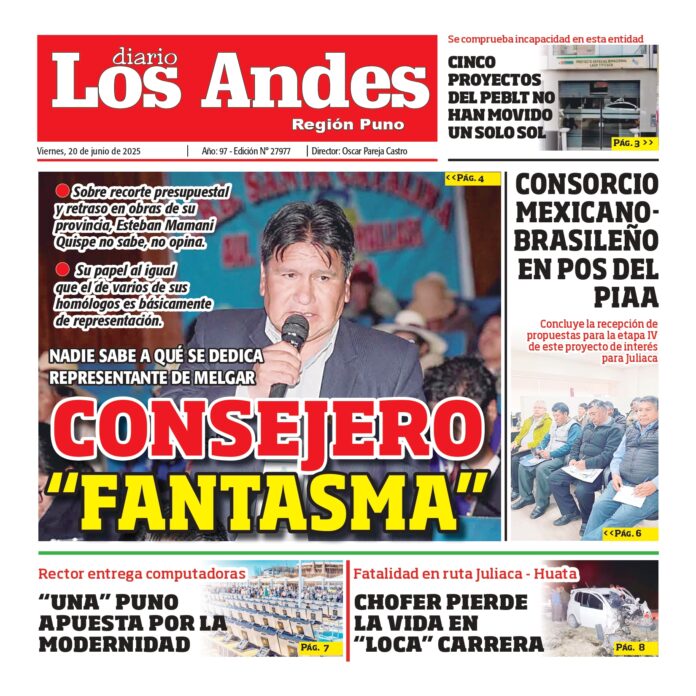 Por: Diario los Andes Fecha: junio 20, 2025 DIARIO DIGITAL PUNO: Diario los Andes 20/06/2025 Vistas: 21 TagsDiario DigitalDiario Los AndesPuno Artículo anteriorAREQUIPA: Diario los Andes 20/06/2025Artículo siguientePUNO: Diario los Andes 21/06/2025 Diario los Andes Compartir post: FacebookTwitterPinterestWhatsApp Suscríbete Quiero entrar He leído y acepto la Política de Privacidad. Populares DIARIO LOS ANDES PUNO: 08/03/2026 DIARIO LOS ANDES AREQUIPA: 08/03/2026 Pescadores artesanales advierten paro indefinido contra Produce Salvataje rescata a 259 bañistas en playas de Arequipa Puno marcha por igualdad en el Día Internacional de la Mujer Más vistosMás vistos DIARIO LOS ANDES PUNO: 08/03/2026 Diario los Andes - marzo 8, 2026 DIARIO LOS ANDES AREQUIPA: 08/03/2026 Diario los Andes - marzo 8, 2026 Pescadores artesanales advierten paro indefinido contra Produce Diario los Andes - marzo 7, 2026 Redacción: Jessimiel Rosas Pescadores artesanales de la Macrosur advirtieron que... Salvataje rescata a 259 bañistas en playas de Arequipa Diario los Andes - marzo 7, 2026 Redacción: Jessimiel Rosas Un total de 259 personas fueron rescatadas...