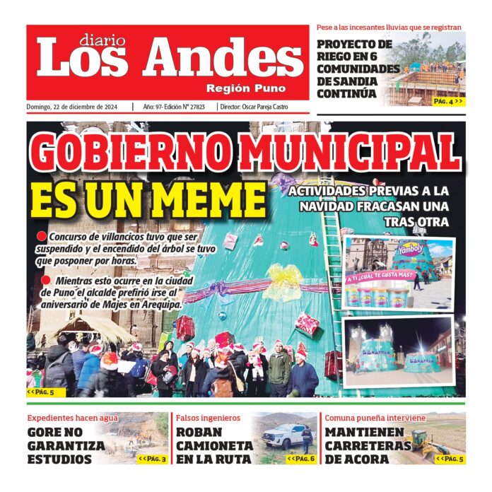 Por: Diario los Andes Fecha: diciembre 22, 2024 DIARIO DIGITAL PUNO: Diario los Andes 22/12/2024 Vistas: 29 Artículo anteriorPUNO: Diario los Andes 21/12/2024Artículo siguienteAREQUIPA: Diario los Andes 22/12/2024 Diario los Andes Compartir post: FacebookTwitterPinterestWhatsApp Suscríbete Quiero entrar He leído y acepto la Política de Privacidad. Populares PUNO: Diario Los Andes 07/02/2026 AREQUIPA: Diario Los Andes 07/02/2026 ¿Cuántos megas necesita realmente tu hogar para teletrabajo y streaming? TACNA SE LEVANTA CONTRA CHALLAPALCA: CIUDADANOS DENUNCIAN HACINAMIENTO Y CONTAMINACIÓN Arequipa: Obra de PTAR Characato y Socabaya acumula seis años de retrasos y fallas técnicas Más vistosMás vistos PUNO: Diario Los Andes 07/02/2026 Diario los Andes - febrero 7, 2026 AREQUIPA: Diario Los Andes 07/02/2026 Diario los Andes - febrero 7, 2026 ¿Cuántos megas necesita realmente tu hogar para teletrabajo y streaming? Diario los Andes - febrero 6, 2026 Por: Diario Los Andes La velocidad que necesitas depende de... TACNA SE LEVANTA CONTRA CHALLAPALCA: CIUDADANOS DENUNCIAN HACINAMIENTO Y CONTAMINACIÓN Diario los Andes - febrero 6, 2026 Redacción: Diarios Los Andes El 4 de febrero de...