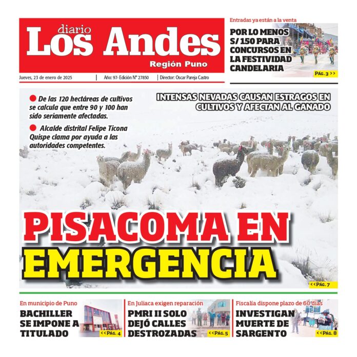 Por: Diario los Andes Fecha: enero 23, 2025 DIARIO DIGITAL PUNO: Diario los Andes 23/01/2025 Vistas: 96 TagsDiario DigitalDiario Los AndesPuno Artículo anteriorAREQUIPA: Diario los Andes 23/01/2025Artículo siguienteAREQUIPA: Diario los Andes 24/01/2025 Diario los Andes Compartir post: FacebookTwitterPinterestWhatsApp Suscríbete Quiero entrar He leído y acepto la Política de Privacidad. Populares A 25 se incrementan los casos de sarampión en la región Puno Sal de Maras: el tesoro natural del Perú que conquista cocinas y negocios Voto puneño fue determinante Puno: Varón muere tras presunta caída de cinco metros en Alto Huáscar INCIDENCIAS EN LAS ELECCIONES Más vistosMás vistos A 25 se incrementan los casos de sarampión en la región Puno admineditor - abril 13, 2026 Hasta hoy, lunes 13 de abril, los contagios de... Sal de Maras: el tesoro natural del Perú que conquista cocinas y negocios admineditor - abril 13, 2026 En un contexto donde los consumidores buscan productos naturales,... Voto puneño fue determinante admineditor - abril 13, 2026 Durante la jornada electoral de este 12 de abril... Puno: Varón muere tras presunta caída de cinco metros en Alto Huáscar admineditor - abril 13, 2026 Un lamentable hecho se registró en el barrio Alto...