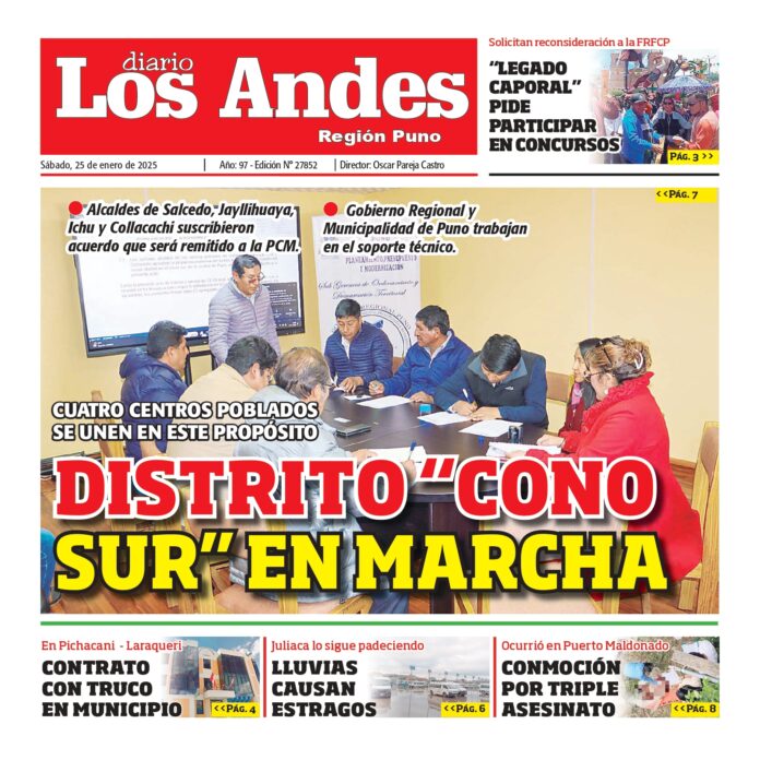 Por: Diario los Andes Fecha: enero 25, 2025 DIARIO DIGITAL PUNO: Diario los Andes 25/01/2025 Vistas: 33 Artículo anteriorAREQUIPA: Diario los Andes 25/01/2025Artículo siguienteAREQUIPA: Diario los Andes 26/01/2025 Diario los Andes Compartir post: FacebookTwitterPinterestWhatsApp Suscríbete Quiero entrar He leído y acepto la Política de Privacidad. Populares Semanario Los Andes 13/04/2026 DIARIO LOS ANDES AREQUIPA: 12/04/2026 DIARIO LOS ANDES PUNO: 12/04/26 Arequipa: Precio del balón supera los S/50 en últimas semanas Arequipa: Detienen a adulto mayor acusado de tocamientos indebidos a menor Más vistosMás vistos Semanario Los Andes 13/04/2026 admingeneral - abril 12, 2026 DIARIO LOS ANDES AREQUIPA: 12/04/2026 admingeneral - abril 11, 2026 DIARIO LOS ANDES PUNO: 12/04/26 admingeneral - abril 11, 2026 Arequipa: Precio del balón supera los S/50 en últimas semanas admineditor - abril 11, 2026 Redacción: Jessimiel Rosas En el distrito de Cayma, el precio...