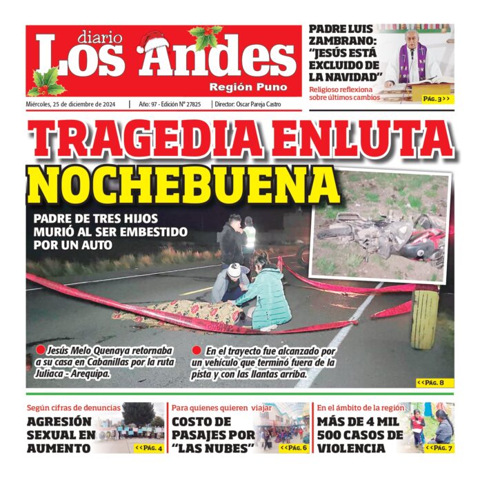 Por: Diario los Andes Fecha: diciembre 25, 2024 DIARIO DIGITAL PUNO: Diario los Andes 25/12/2024 Vistas: 18 Artículo anteriorAREQUIPA: Diario los Andes 25/12/2024Artículo siguienteAREQUIPA: Diario los Andes 26/12/2024 Diario los Andes Compartir post: FacebookTwitterPinterestWhatsApp Suscríbete Quiero entrar He leído y acepto la Política de Privacidad. Populares Semanario Los Andes 13/04/2026 DIARIO LOS ANDES AREQUIPA: 12/04/2026 DIARIO LOS ANDES PUNO: 12/04/26 Arequipa: Precio del balón supera los S/50 en últimas semanas Arequipa: Detienen a adulto mayor acusado de tocamientos indebidos a menor Más vistosMás vistos Semanario Los Andes 13/04/2026 admingeneral - abril 12, 2026 DIARIO LOS ANDES AREQUIPA: 12/04/2026 admingeneral - abril 11, 2026 DIARIO LOS ANDES PUNO: 12/04/26 admingeneral - abril 11, 2026 Arequipa: Precio del balón supera los S/50 en últimas semanas admineditor - abril 11, 2026 Redacción: Jessimiel Rosas En el distrito de Cayma, el precio...