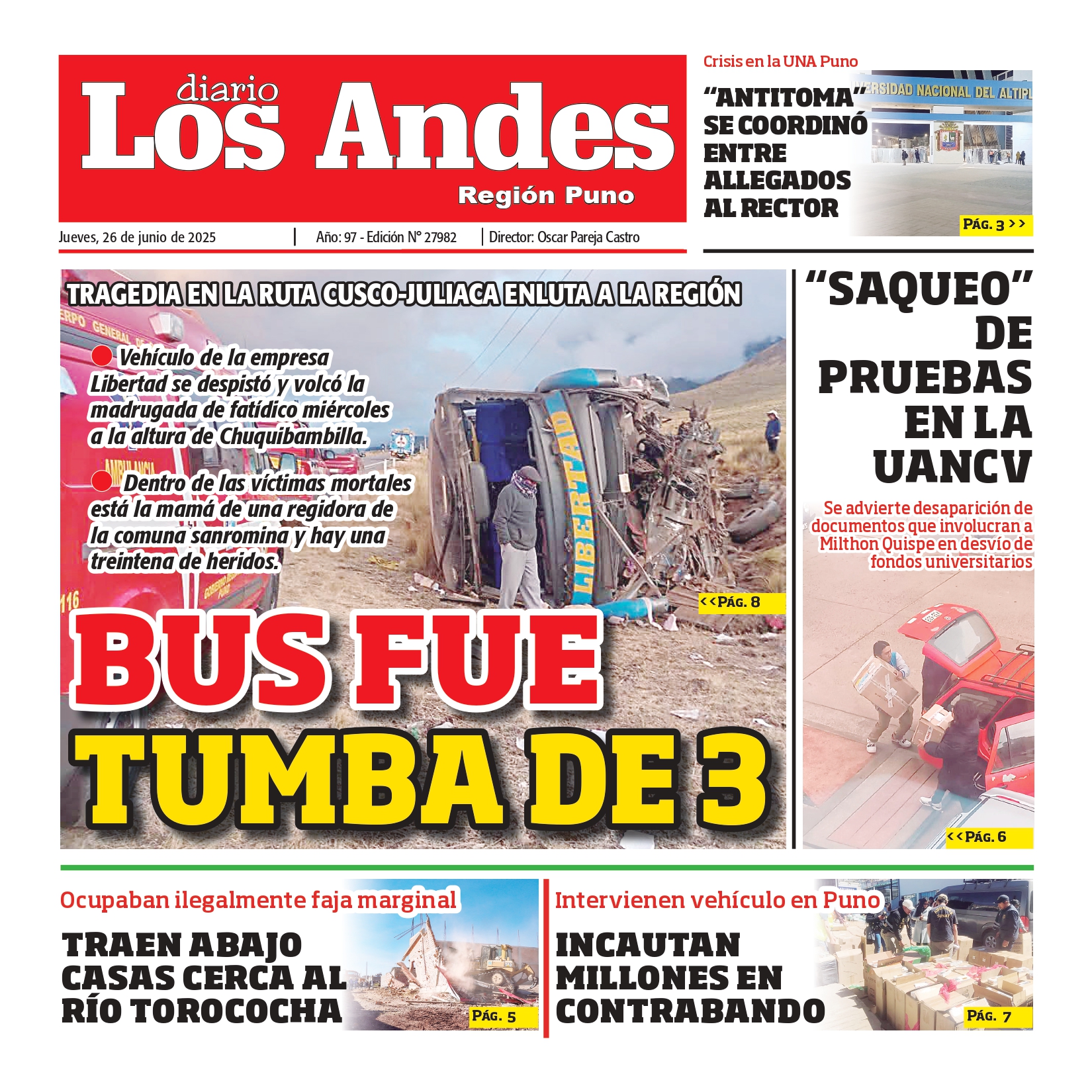PUNO: Diario los Andes 26/06/2025 Autor de la entrada Por Diario los Andes Fecha de publicación junio 25, 2025 Categorías En DIARIO VIRTUAL Etiquetas Diario Digital, Diario Los Andes, Puno
