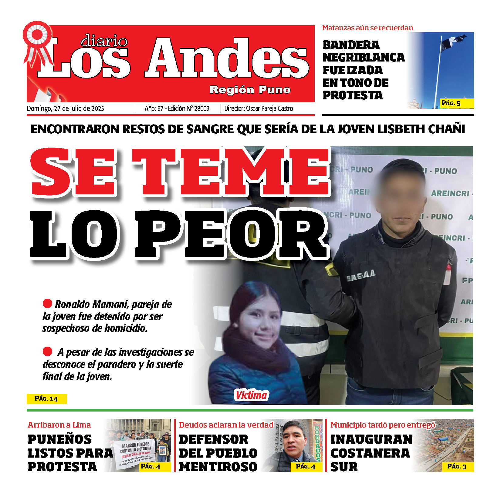 PUNO: Diario Los Andes 27/07/2025 Autor de la entrada Por Diario los Andes Fecha de publicación julio 27, 2025 Categorías En DIARIO VIRTUAL Etiquetas Diario Digital, Diario Los Andes, Puno