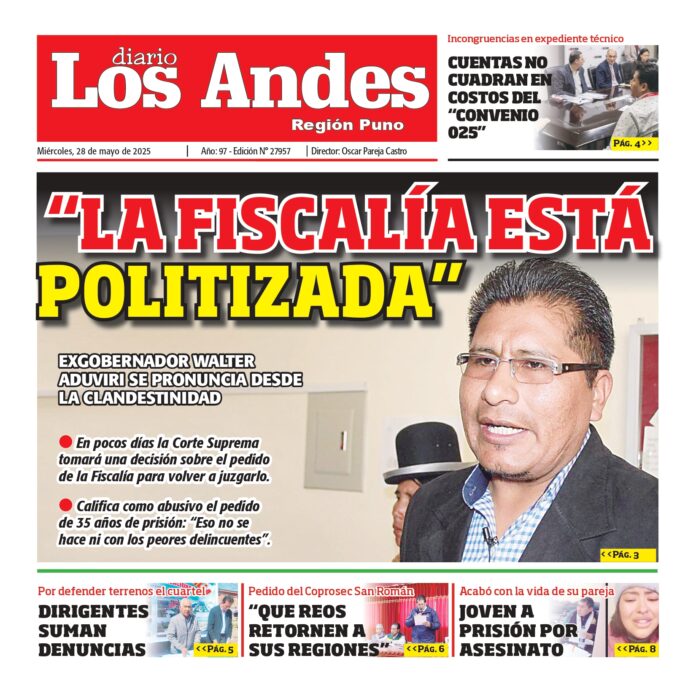 Por: Diario los Andes Fecha: mayo 27, 2025 DIARIO DIGITAL PUNO: Diario los Andes 28/05/2025 Vistas: 27 Artículo anteriorAREQUIPA: Diario los Andes 28/05/2025Artículo siguienteAREQUIPA: Diario los Andes 29/05/2025 Diario los Andes Compartir post: FacebookTwitterPinterestWhatsApp Suscríbete Quiero entrar He leído y acepto la Política de Privacidad. Populares DIARIO LOS ANDES PUNO: 17/04/2026 DIARIO LOS ANDES AREQUIPA: 17/04/2026 JNE recibió más de 5 mil solicitudes de dispensa y justificación electoral Incautan mercadería de contrabando en la vía Moho-Huancané UNA Puno acumula deuda por arbitrios municipales por cerca a S/180 mil Más vistosMás vistos DIARIO LOS ANDES PUNO: 17/04/2026 admingeneral - abril 17, 2026 DIARIO LOS ANDES AREQUIPA: 17/04/2026 admingeneral - abril 17, 2026 JNE recibió más de 5 mil solicitudes de dispensa y justificación electoral admineditor - abril 16, 2026 El Jurado Nacional de Elecciones (JNE) recibió un total... Incautan mercadería de contrabando en la vía Moho-Huancané admineditor - abril 16, 2026 Personal del Área de Policía Fiscal Juliaca ejecutó el...