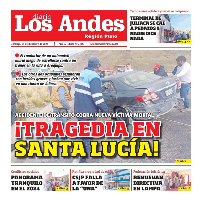 Por: Diario los Andes Fecha: diciembre 29, 2024 DIARIO DIGITAL PUNO: Diario los Andes 29/12/2024 Vistas: 22 Artículo anteriorAREQUIPA: Diario los Andes 29/12/2024Artículo siguienteSemanario Los Andes 30/12/2024 Diario los Andes Compartir post: FacebookTwitterPinterestWhatsApp Suscríbete Quiero entrar He leído y acepto la Política de Privacidad. Populares Semanario Los Andes 13/04/2026 DIARIO LOS ANDES AREQUIPA: 12/04/2026 DIARIO LOS ANDES PUNO: 12/04/26 Arequipa: Precio del balón supera los S/50 en últimas semanas Arequipa: Detienen a adulto mayor acusado de tocamientos indebidos a menor Más vistosMás vistos Semanario Los Andes 13/04/2026 admingeneral - abril 12, 2026 DIARIO LOS ANDES AREQUIPA: 12/04/2026 admingeneral - abril 11, 2026 DIARIO LOS ANDES PUNO: 12/04/26 admingeneral - abril 11, 2026 Arequipa: Precio del balón supera los S/50 en últimas semanas admineditor - abril 11, 2026 Redacción: Jessimiel Rosas En el distrito de Cayma, el precio...