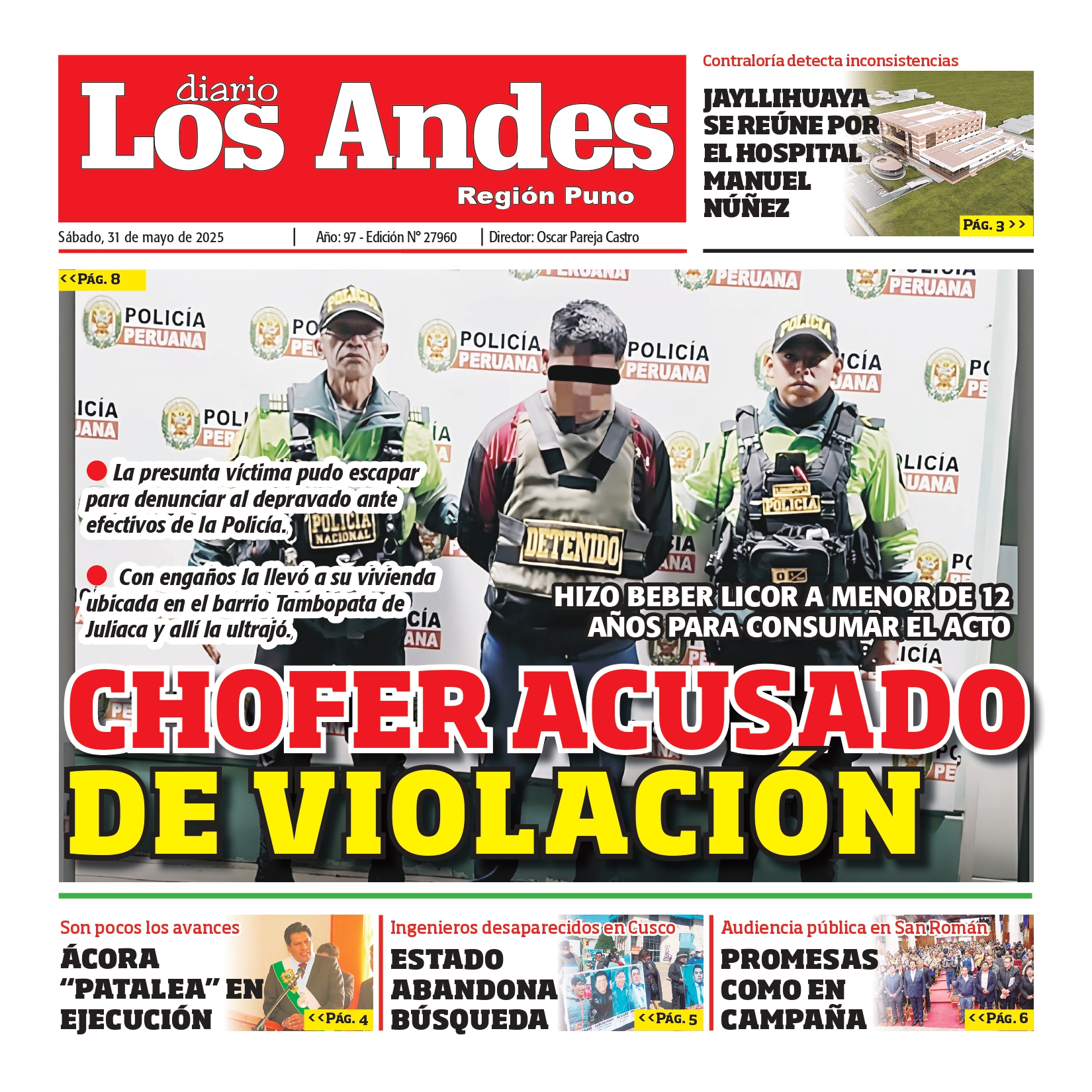 PUNO: Diario los Andes 31/05/2025 Autor de la entrada Por Diario los Andes Fecha de publicación mayo 30, 2025 Categorías En DIARIO VIRTUAL Etiquetas Diario Digital, Diario Los Andes, Puno