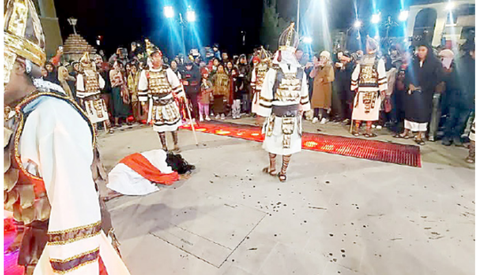 La representación comenzó en la plaza principal de Caracoto. La multitud siguió el recorrido, mientras las escenas de la pasión de Cristo se desplegaban ante ellos, preparando el camino hacia la cima del cerro, donde se realizó la crucifixión.
