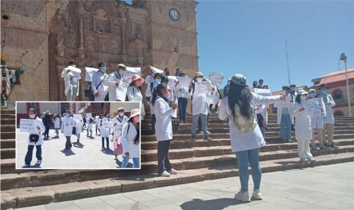Un nutrido grupo de estudiantes de medicina de la Universidad Nacional del Altiplano (UNA) marcharon en las calles del centro de Puno reclamando mejores condiciones para desarrollar sus actividades en el internado rotatorio.