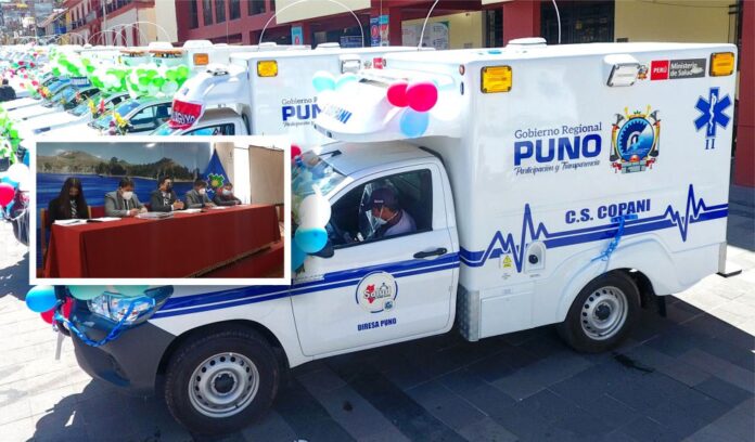 En conferencia de prensa, el gerente general del Gobierno Regional de Puno (GRP), Omar Saravia, junto al gerente de desarrollo social, Pío Mamani, y el titular de la Dirección Regional de Salud (Diresa), Juan Carlos Mendoza, anunciaron que tras los pedidos de ambulancias de varios distritos respecto a la dotación de ambulancias para sus centros de salud, hallaron una salida técnica.