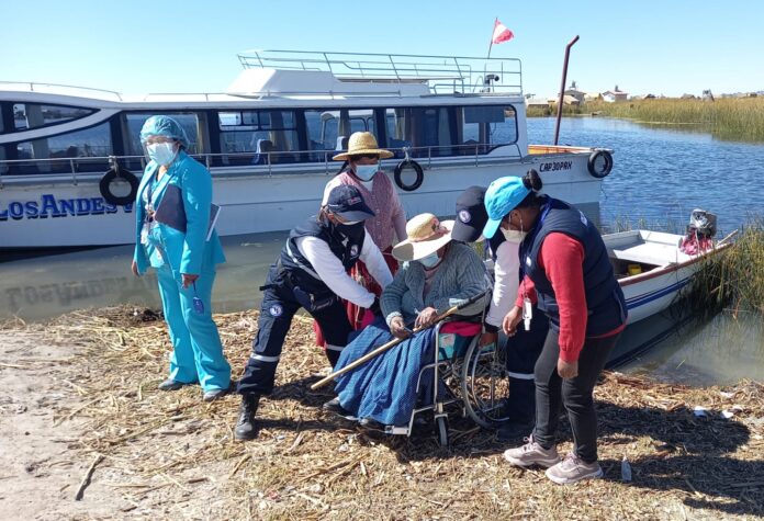 Puno. Pobladores originarios, mayores de 60 años, de las islas flotantes de Los Uros, ubicados en medio del lago Titicaca, considerados como los únicos en el mundo, fueron inoculados con la primera dosis de la vacuna contra la Covid-19. Para llegar hasta la zona, las brigadas de salud y autoridades, surcaron el lago navegable más alto del mundo, a bordo de una embarcación, este miércoles 7 de julio.