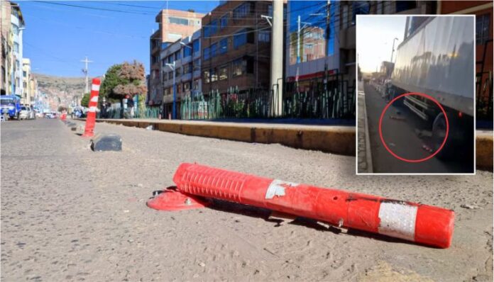 El hecho se registró aproximadamente a las 6:00 horas de ayer. Los vecinos de la zona divisaron cómo el tráiler con placa de rodaje VCW – 999, destruyó parte de las estructuras de las ciclovías instaladas en la tercera y cuarta cuadra de la avenida Titicaca.