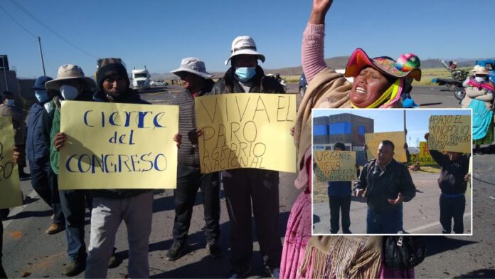 Un grupo de pobladores bloqueó la carretera Juliaca-Puno a la altura del desvío hacia Capachica, a fin de hacer sentir el paro agrario, que tiene carácter preventivo y busca que se incremente el precio de los productos que cosechan en sus tierras, tras el alza de los productos de primera necesidad a nivel nacional.