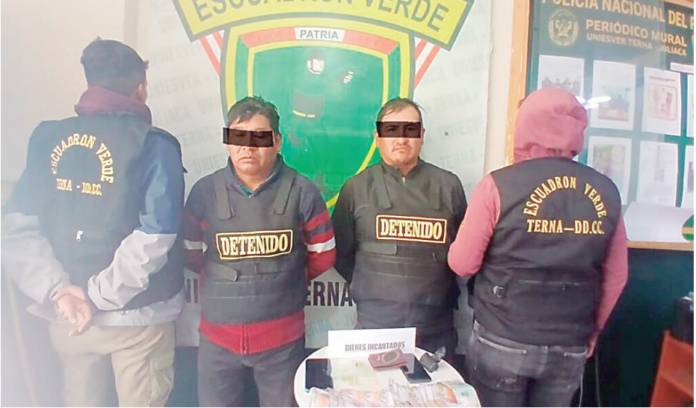 Dos presuntos estafadores identificados como René Huanca Carcausto (43) alias ‘El Tucán’, y Simón Ramos Mendoza (50) alias ‘El Misio’, fueron detenidos por el personal del Escuadrón Verde de la Policía, en el preciso instante en el que intentaban estafar a Deysi Margoth Cosi Cosi (22) a través de la modalidad de “cascada”.