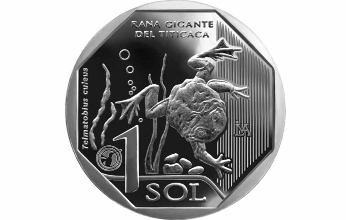 El Banco Central de Reserva del Perú puso en circulación, desde ayer 4 de noviembre, la décima y última moneda de la Serie Numismática “Fauna Silvestre Amenazada del Perú”, alusiva a la Rana Gigante del Titicaca, el anfibio más emblemático del altiplano peruano-boliviano.