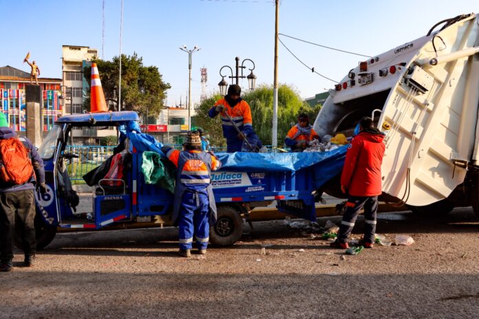 En la ciudad de Juliaca, más de 150 trabajadores de personal de limpieza de la comuna provincial de San Román, realizó una jornada en las vías donde se realizó el recorrido de la veneración de la Festividad Virgen de la Merced, donde se recogieron cerca de 14 toneladas de residuos.