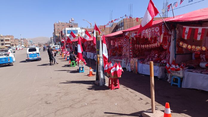 Las ventas en la feria de adornos por Fiestas Patrias, organizada por la Asociación Única de Venta de Artículos Mi Patria 28 de Julio, han sido notablemente bajas este año. Ubicados en la avenida Ferial, los comerciantes se enfrentarán a esta situación hasta el próximo 28 de julio, fecha en que concluirá la actividad.
