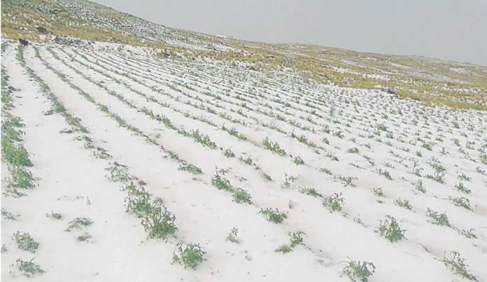 Una fuerte granizada azotó el día lunes la provincia de Lampa, afectando gran cantidad de hectáreas de campos de cultivo.
