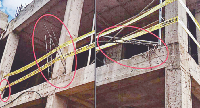 En el segundo nivel del bloque C se puede apreciar varas de acero dobladas porque vaciaron mál el cemento, hecho que es otro insulto a las normas de construcción.