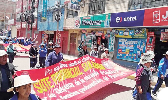 En lugar de celebrar el Día del Maestro, los profesores del Sutep San Román salieron a protestar en su día contra el gobierno central por las leyes que consideran atentatorias contra el magisterio.