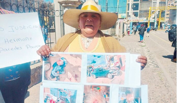 Los familiares de Walter Paredes Paucar, un mototaxista embestido por un auto en la avenida Julio C. Tello de Juliaca, exigen justicia tras quedar discapacitado. Durante un plantón realizado ayer en la plaza de Armas, denunciaron que el presunto responsable Wilson Apaza Chayña, querría fugar.