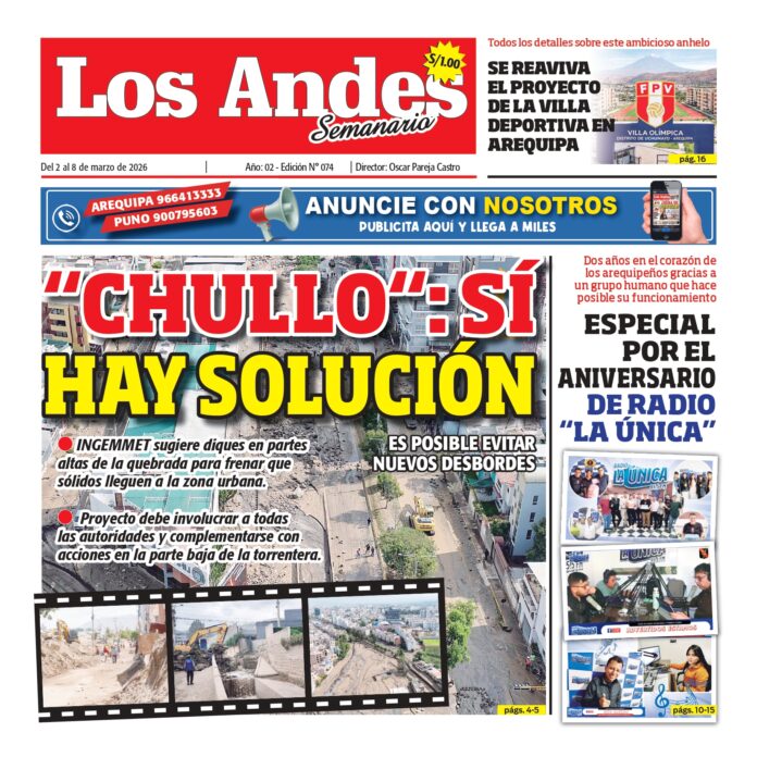 Por: Diario los Andes Fecha: marzo 2, 2026 DIARIO DIGITAL Semanario Los Andes 02/03/2026 Vistas: 404 Artículo anteriorDIARIO LOS ANDES AREQUIPA: 01/03/2026Artículo siguienteDIARIO LOS ANDES AREQUIPA: 03/03/2026 Diario los Andes DEJAR UNA RESPUESTA Cancelar respuesta Comentario: Por favor, introduzca su comentario Nombre:* Introduzca aquí su nombre Correo electrónico:* Ha introducido una dirección de correo electrónico incorrecta Introduzca aquí su dirección de correo electrónico Página web: Guarda mi nombre, correo electrónico y sitio web en este navegador para la próxima vez que comente. Compartir post: FacebookTwitterPinterestWhatsApp Suscríbete Quiero entrar He leído y acepto la Política de Privacidad. Populares DIARIO LOS ANDES PUNO: 12/03/2026 DIARIO LOS ANDES AREQUIPA: 12/03/2026 Detectan 80 buses con pasaje elevado en Arequipa Fiscalía descarta desabastecimiento de gas en Socabaya Reparación de ductos de Camisea alcanza 64% Más vistosMás vistos DIARIO LOS ANDES PUNO: 12/03/2026 Diario los Andes - marzo 11, 2026 DIARIO LOS ANDES AREQUIPA: 12/03/2026 Diario los Andes - marzo 11, 2026 Detectan 80 buses con pasaje elevado en Arequipa Diario los Andes - marzo 11, 2026 Redacción: Jessimiel Rosas Inspectores de transporte de la Municipalidad Provincial... Fiscalía descarta desabastecimiento de gas en Socabaya Diario los Andes - marzo 11, 2026 Redacción: Jessimiel Rosas El Ministerio Público descartó el desabastecimiento de...