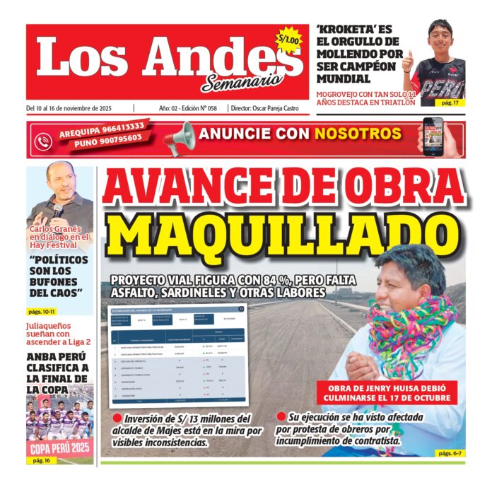 Por: Diario los Andes Fecha: noviembre 9, 2025 DIARIO DIGITAL Semanario Los Andes 10/11/2025 Vistas: 83 Artículo anteriorAREQUIPA: Diario Los Andes 09/11/2025Artículo siguienteAREQUIPA: Diario Los Andes 11/11/2025 Diario los Andes Compartir post: FacebookTwitterPinterestWhatsApp Suscríbete Quiero entrar He leído y acepto la Política de Privacidad. Populares DIARIO LOS ANDES AREQUIPA: 26/04/26 DIARIO LOS ANDES PUNO: 26/04/26 Arequipa: Ambulantes persisten en San Camilo pese a operativos municipales Arequipa: Detienen a presunto estafador por venta de cerveza adulterada Atlético Grau y Alianza Atlético enfrentan duros retos en la fecha 12 del Apertura Más vistosMás vistos DIARIO LOS ANDES AREQUIPA: 26/04/26 admingeneral - abril 25, 2026 DIARIO LOS ANDES PUNO: 26/04/26 admingeneral - abril 25, 2026 Arequipa: Ambulantes persisten en San Camilo pese a operativos municipales admineditor - abril 25, 2026 El comercio informal sigue presente en los alrededores del... Arequipa: Detienen a presunto estafador por venta de cerveza adulterada admineditor - abril 25, 2026 Redacción: Jessimiel Rosas Agentes de la unidad de Halcones de...