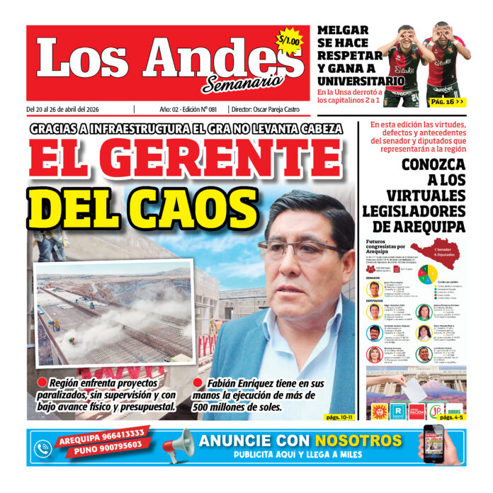 Por: admingeneral Fecha: abril 19, 2026 DIARIO DIGITAL Semanario Los Andes 20/04/2026 Vistas: 16 Artículo anteriorDIARIO LOS ANDES PUNO: 19/04/26 admingeneralhttp://adminlosandes DEJAR UNA RESPUESTA Cancelar respuesta Comentario: Por favor, introduzca su comentario Nombre:* Introduzca aquí su nombre Correo electrónico:* Ha introducido una dirección de correo electrónico incorrecta Introduzca aquí su dirección de correo electrónico Página web: Guarda mi nombre, correo electrónico y sitio web en este navegador para la próxima vez que comente. Compartir post: FacebookTwitterPinterestWhatsApp Suscríbete Quiero entrar He leído y acepto la Política de Privacidad. Populares DIARIO LOS ANDES PUNO: 19/04/26 DIARIO LOS ANDES AREQUIPA: 19/04/26 Arequipa: Cierre temporal en calle Peral por obras de mejoramiento vial Operativo en Juliaca permite desarticular banda criminal y rescatar a tres mujeres Arequipa: Cerrarán puente Bolognesi por rodaje de película “Coquito” Más vistosMás vistos DIARIO LOS ANDES PUNO: 19/04/26 admingeneral - abril 18, 2026 DIARIO LOS ANDES AREQUIPA: 19/04/26 admingeneral - abril 18, 2026 Arequipa: Cierre temporal en calle Peral por obras de mejoramiento vial admineditor - abril 18, 2026 Redacción: Jessimiel Rosas Desde la noche del viernes 17 de... Operativo en Juliaca permite desarticular banda criminal y rescatar a tres mujeres admineditor - abril 18, 2026 Un operativo policial en la ciudad #Juliaca terminó con...