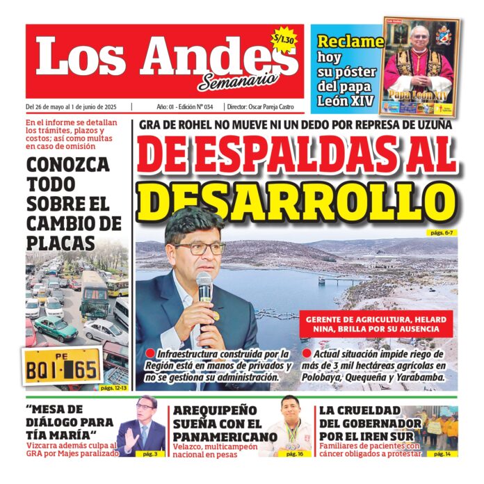 Por: Diario los Andes Fecha: mayo 25, 2025 DIARIO DIGITAL Semanario Los Andes 26/05/2025 Vistas: 23 TagsDiario DigitalDiario Los AndesSemanario Artículo anteriorPUNO: Diario los Andes 25/05/2025Artículo siguienteAREQUIPA: Diario los Andes 27/05/2025 Diario los Andes Compartir post: FacebookTwitterPinterestWhatsApp Suscríbete Quiero entrar He leído y acepto la Política de Privacidad. Populares Semanario Los Andes 13/04/2026 DIARIO LOS ANDES AREQUIPA: 12/04/2026 DIARIO LOS ANDES PUNO: 12/04/26 Arequipa: Precio del balón supera los S/50 en últimas semanas Arequipa: Detienen a adulto mayor acusado de tocamientos indebidos a menor Más vistosMás vistos Semanario Los Andes 13/04/2026 admingeneral - abril 12, 2026 DIARIO LOS ANDES AREQUIPA: 12/04/2026 admingeneral - abril 11, 2026 DIARIO LOS ANDES PUNO: 12/04/26 admingeneral - abril 11, 2026 Arequipa: Precio del balón supera los S/50 en últimas semanas admineditor - abril 11, 2026 Redacción: Jessimiel Rosas En el distrito de Cayma, el precio...