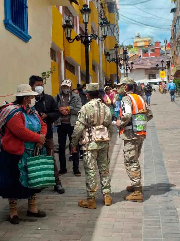 Puno. Teniendo en cuenta que los casos de contagio de covid-19 estarían incrementándose en nuestra región, los militares de la Cuarta Brigada de Montaña de Puno cumplieron diversas acciones al respecto.
