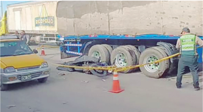Dos horas después, en la vía de Evitamiento en Cerro Colorado, un motociclista perdió la vida al ser impactado por un tráiler. Según el conductor del camión de placa VDP-711, identificado como Richard Quispe, circulaba a baja velocidad debido al tráfico cuando sintió un pequeño bache. Al revisar por el retrovisor, vio la motocicleta atrapada bajo las llantas traseras.