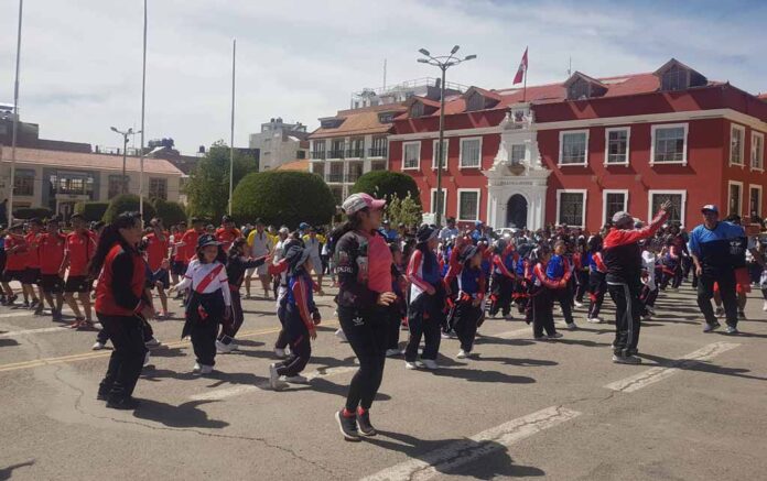 En conmemoración al Día Mundial de la Actividad Física que se celebra el 6 de abril de cada año, la Sub Gerencia de Cultura y Deporte de la Municipalidad de Puno y el Instituto Peruano del Deporte (IPD) de Puno, invitaron a la Universidad Nacional del Altiplano (UNA) y a diferentes centros educativos entre particulares y estatales, a participar del aerotón y baile entretenido.