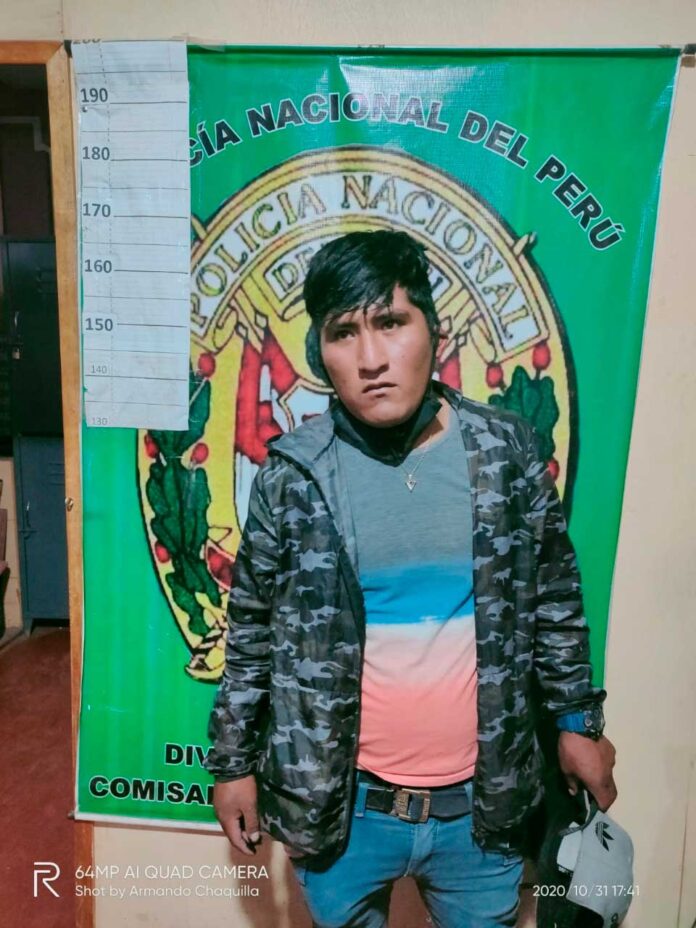 Juliaca. Ronaldo Arpi Vilca (20) fue detenido por el personal de la PNP, por el presunto delito de robo de un equipo celular, ya que, tras ser sometido al registro personal, se le halló en sus partes íntimas, el móvil que la víctima denunció de hurto.
