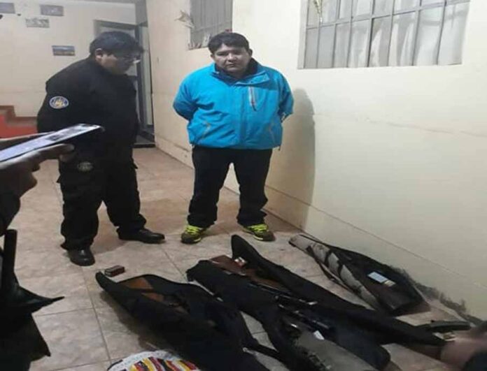 Efectivos policiales de la comisaría Santa Bárbara de la ciudad de Juliaca intervinieron a dos sujetos que realizaban disparos al aire al interior de su vivienda, donde además tenían un arsenal.