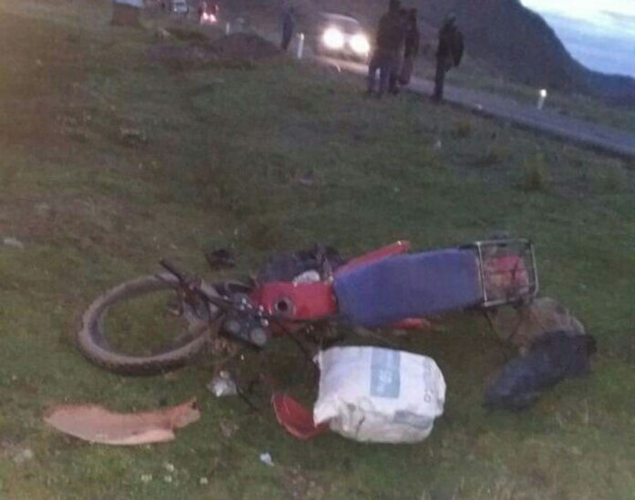 El choque se dio al promediar las 5 de la mañana, cuando los comuneros del sector alertaron a medios locales sobre el accidente que involucró un vehículo Renault de placa V3P-969 y una moto de color rojo, cuyo conductor, quien no ha sido identificado, falleció producto del impacto.