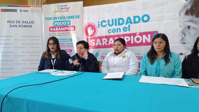 Mediante una conferencia de prensa, los profesionales de la Red de Salud (Redess) San Román informaron que alrededor de 9 mil menores de 5 años de edad están propensos a contraer el sarampión en los distritos de Juliaca y San Miguel, pues no están vacunados contra la enfermedad.