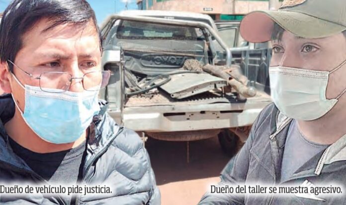 El cusqueño Serapio Baca Phocco denunció que el taller mecánico denominado “Planchado y pintado Characato”, ubicado en la esquina del jirón Miguel Grau, en la salida al Cusco de la ciudad de Juliaca, desmanteló su vehículo y lo dejó inservible.