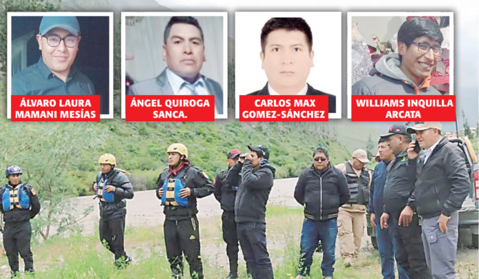 En la jornada de ayer jueves 20 de febrero, los familiares de Carlos Max Gómez Sánchez (35), William Inquilla Arcata (32), Álvaro Laura Mamani (32) y Miguel Quiroga Sanca (38) encontraron restos de la puerta de la camioneta que cayó al río el pasado lunes 17 y una casaca que pertenecería a uno de los desaparecidos.