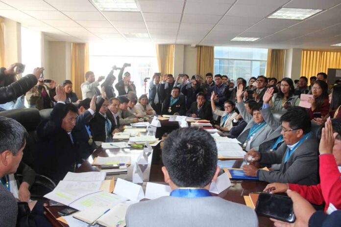 A su turno, los consejeros de ambas posiciones no se callaron: “También se debería discutir la reducción de la dieta de los consejeros”, señaló Nury Machaca. “No votemos por rencor, egoísmo, rencillas o por hacer hígado”, dijo Jaime Chambilla.